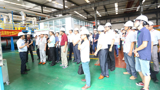 由中華環(huán)保聯(lián)合會組織的共計(jì)50多人的參訪團(tuán),在郅立鵬董事長的引領(lǐng)下先后參觀了納博科的“創(chuàng)新中心”、“VOCs凈化技術(shù)產(chǎn)業(yè)化應(yīng)用綜合測試平臺”、“分子篩吸附濃縮轉(zhuǎn)輪組裝生產(chǎn)線”等現(xiàn)代化生產(chǎn)創(chuàng)新平臺。