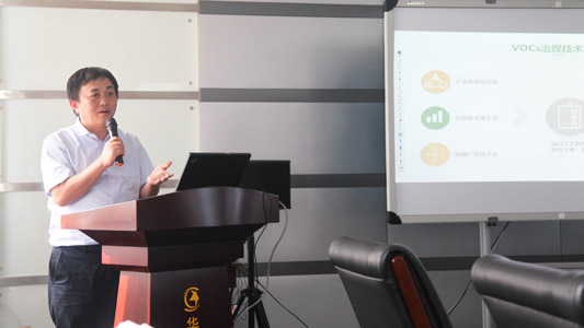 參觀完畢,參訪團(tuán)于納博科四樓大會議室正式開啟了高端沙龍主題交流會議。會議上主持人吳克食分別介紹了與會的各位領(lǐng)導(dǎo)和嘉賓,然后到場的嘉賓分別作了兩分 鐘簡短的自我介紹。郅立鵬董事長分享了納博科成長的經(jīng)驗(yàn)和未來發(fā)展戰(zhàn)略,“用心做環(huán)保,激情創(chuàng)業(yè)、創(chuàng)新,走國際化自主研發(fā)路線”,“去工程化,發(fā)展核心材 料”,“愿與全國環(huán)保同仁,從‘競爭對手’變成‘合作伙伴’”,并熱情回答了嘉賓提出的各種問題,獲得到場嘉賓的一致肯定。納博科研究所的梁鵬教授分享了 “分子篩吸附濃縮轉(zhuǎn)輪技術(shù)”的歷史、研發(fā)歷程、技術(shù)特點(diǎn)和優(yōu)勢以及納博科Napotec?分子篩吸附濃縮轉(zhuǎn)輪的應(yīng)用案例。
