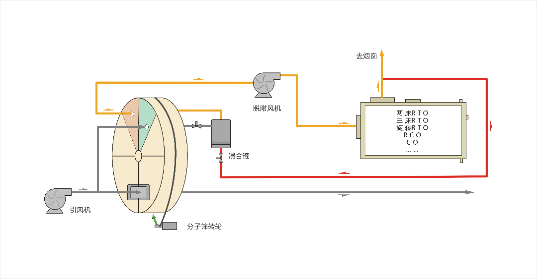 圖-1 Napotec?分子篩轉(zhuǎn)輪+氧化單元組合工藝圖