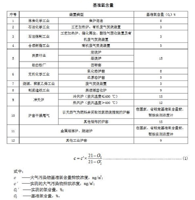 基準(zhǔn)氧含量:多的不提,放眼一看,本標(biāo)準(zhǔn)的基準(zhǔn)氧含量明顯多于前一標(biāo)準(zhǔn)。造成明顯區(qū)別的原因是基準(zhǔn)氧含量不再局限于爐窯類型進(jìn)行規(guī)定,更著眼于按照行業(yè)進(jìn)行規(guī)定,裝置類型更豐富。